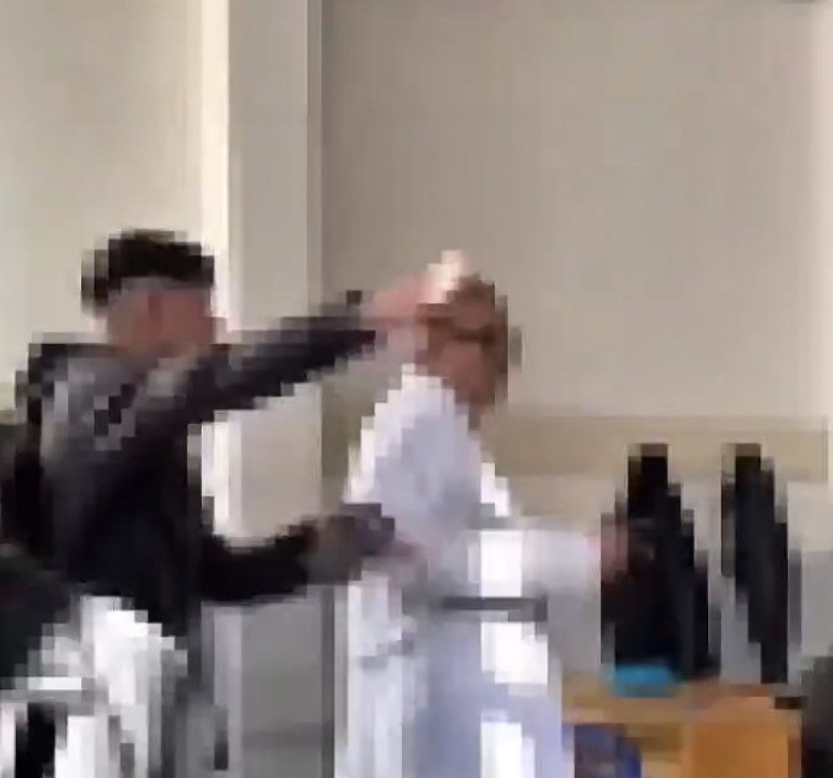 Videoda öğretmenin durumu sakinleştirmeye çalıştığı ancak öğrencilerin davranışlarını sürdürdüğü dikkati çekiyor.