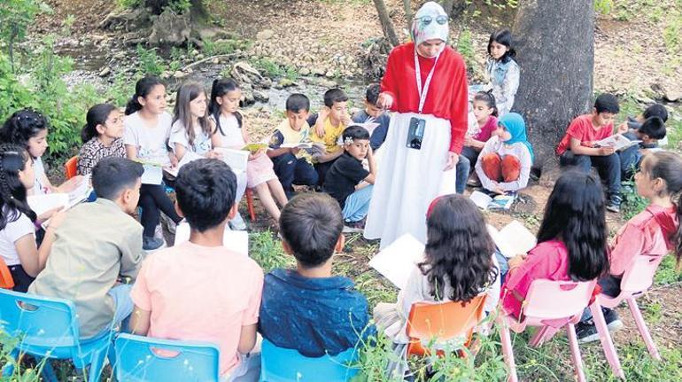 Diyarbakır’da sınıf öğretmeni Tülay Dündar, haftanın bir günü evlerin bahçelerinde ve açık alanda ders işleyerek öğrencilerini doğayla buluşturup onlara çevre bilinci aşılıyor.
