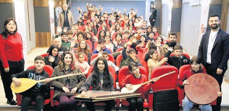Diyarbakır’da müzik öğretmeni Muhammed Tarhan, “Bir Kültür Bir Müzik” projesi kapsamında ziyaret ettiği okullarda öğrencilere bağlama, cura, tambur, kanun, arbane gibi enstrümanların tanıtımını, söylediği türküler eşliğinde yapıyor.