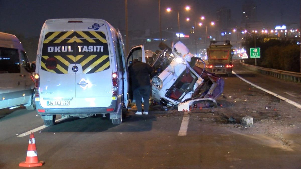 Kamyonet savruldu ve içerisinde işçiler bulunan servise ardından da hafriyat kamyonuna çarptı.