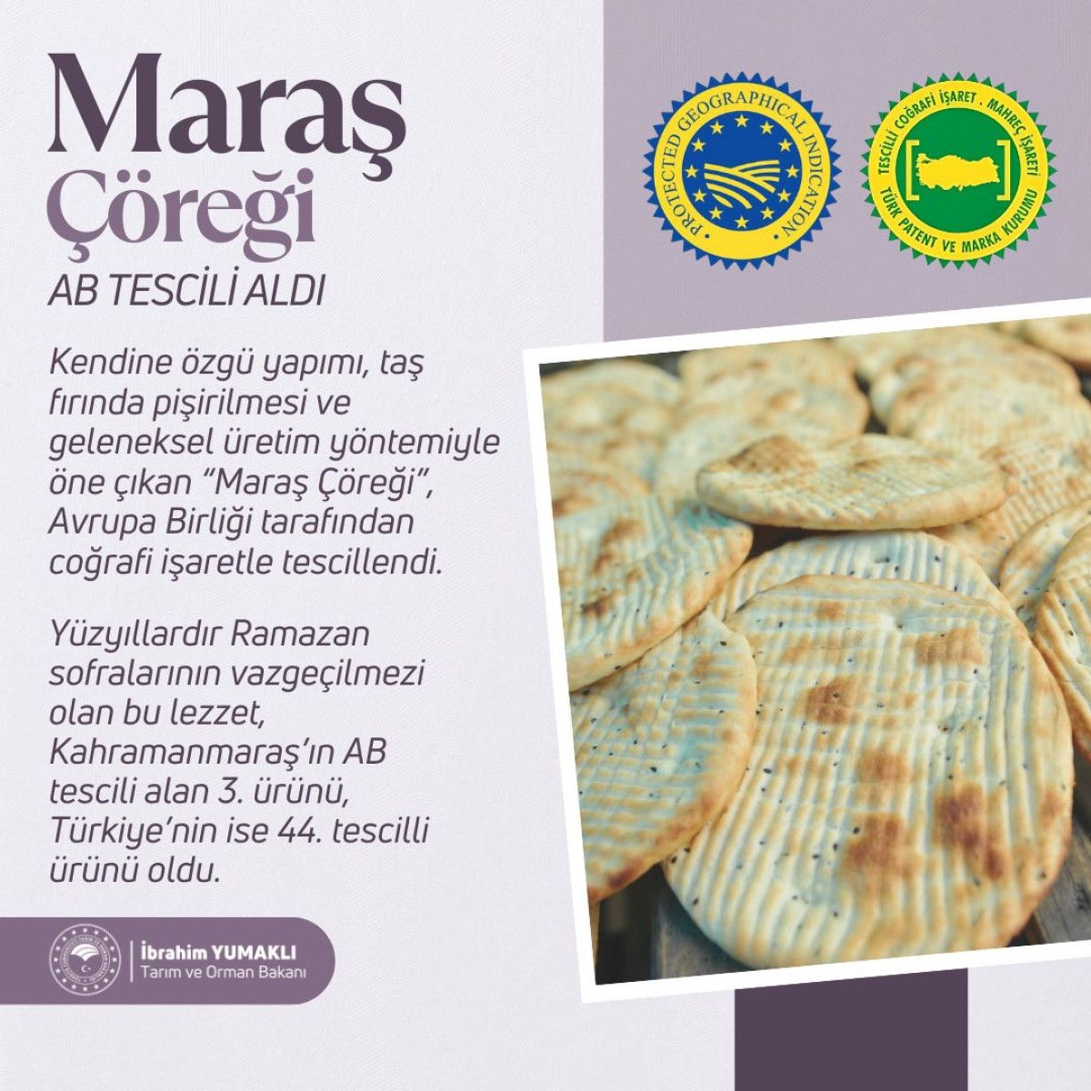 Yumaklı’nın paylaşımında yer alan bilgilere göre Maraş çöreği, kendine özgü yapımı, taş fırında pişirilmesi ve geleneksel üretim yöntemiyle öne çıkıyor. Maraş çöreği, yüzyıllardır Ramazan sofralarının da vazgeçilmez lezzeti olarak biliniyor.